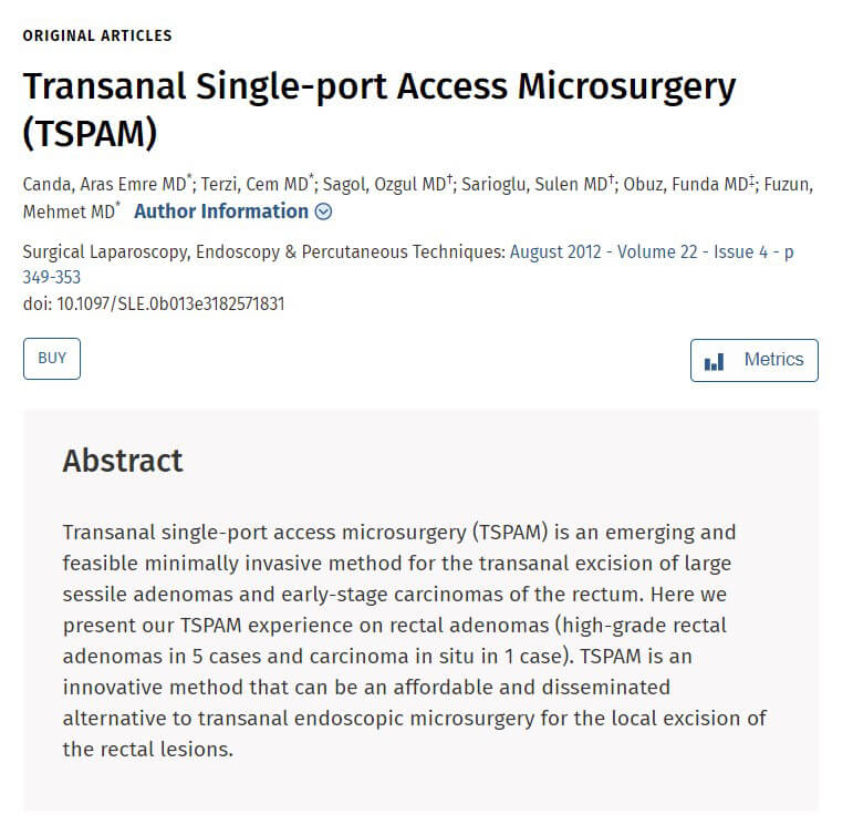 Transanal Endoskopik Cerrahi Konusundaki Bilimsel Yayınlarımız